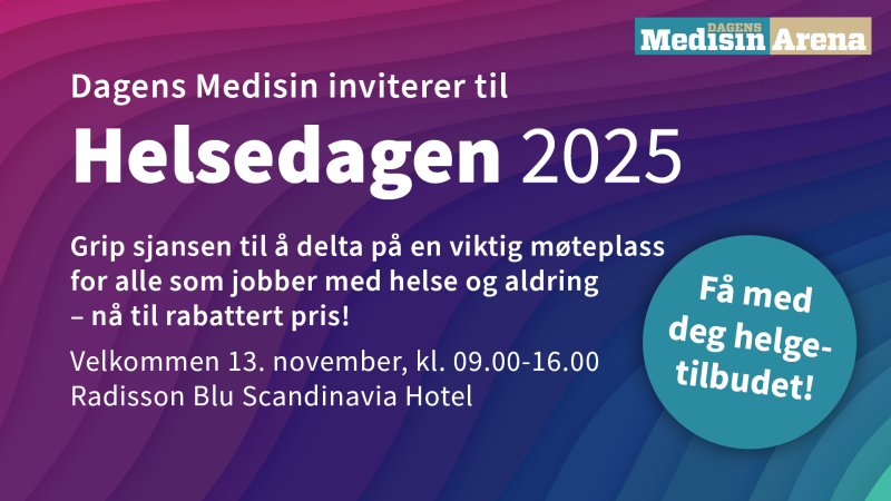 I anledning Alzheimerdagen gjennomfører Dagens Medisin et helgetilbud med redusert pris på billetter til Helsedagen 2025 – en heldagskonferanse om aldring og helse. Fra 19. – 22. september kan du sikre deg billett for 3500 kroner (ordinær pris 3990 ...