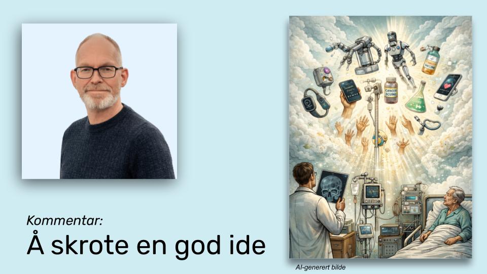 Prosessen i Stortinget er denne gangen trigget av stortingsrepresentant for MDG, Marius Dalin. Han er selv lege, og har med det en solid bakgrunn til å uttale seg om helsesaker. Jeg er derimot mer i tvil om hans forståelse for teknologi, utvikling og innovasjon er på samme nivå.